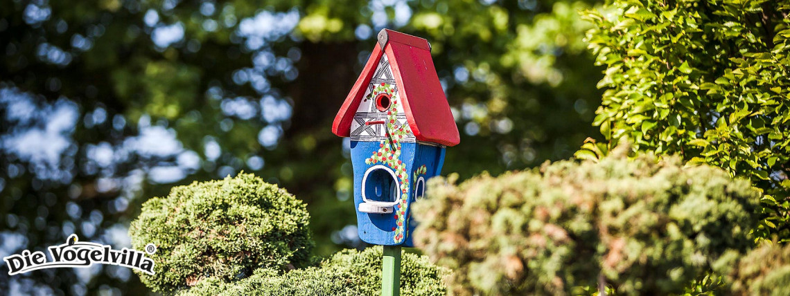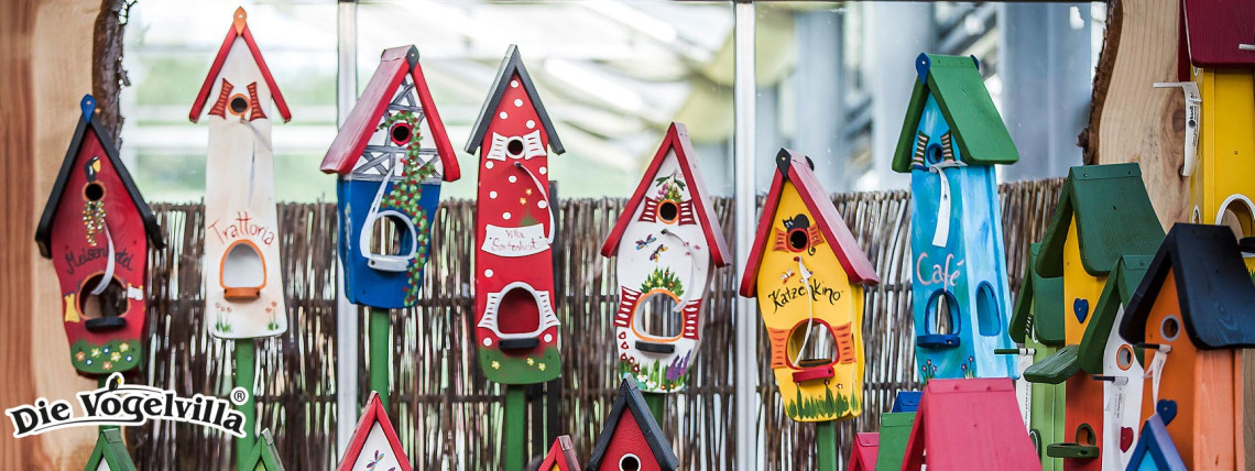 ausgefallene Vogelvillen, Futter- und Nisthäuschen sowie Insektennisthilfen. Abrundend dazu Blumenwiesen für Insekten und hochwertiges Vogelfutter für die Ganzjahresfütterung.